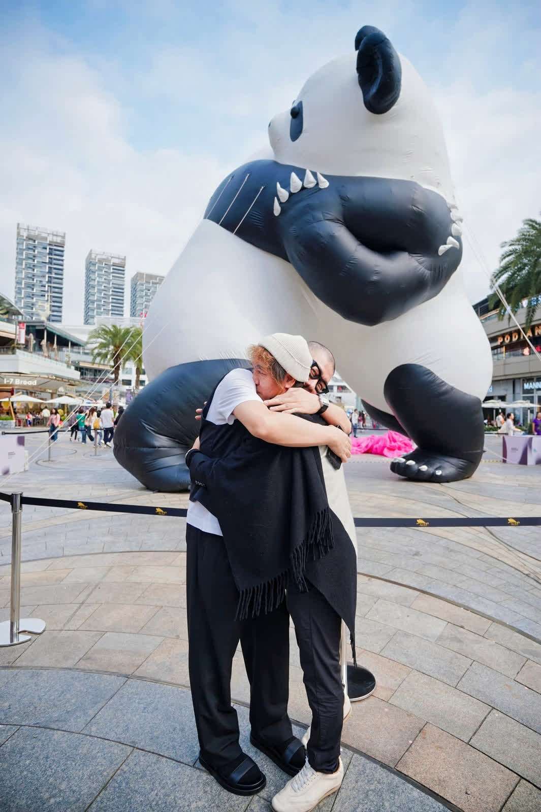 他指出,在戰爭與衝突頻發的當下,擁抱這一姿態本身就是一種無聲的宣言:對抗並非唯一的選擇,溫柔與連結才是更恒久的人類本能。作品中的熊貓保持着一貫的圓潤柔和造型,「成雙成對」的出現則構成了新的敘事——它們不再是孤獨的個體,而是在共同站立中形成穩定的結構。這種「共同存在」的狀態,超越了孤立與疏離,指向了療愈、支持與共生。