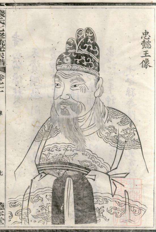吴越忠懿王钱俶像。民国三年钱文德修《吴越钱氏七修流光宗谱》,上海图书馆藏