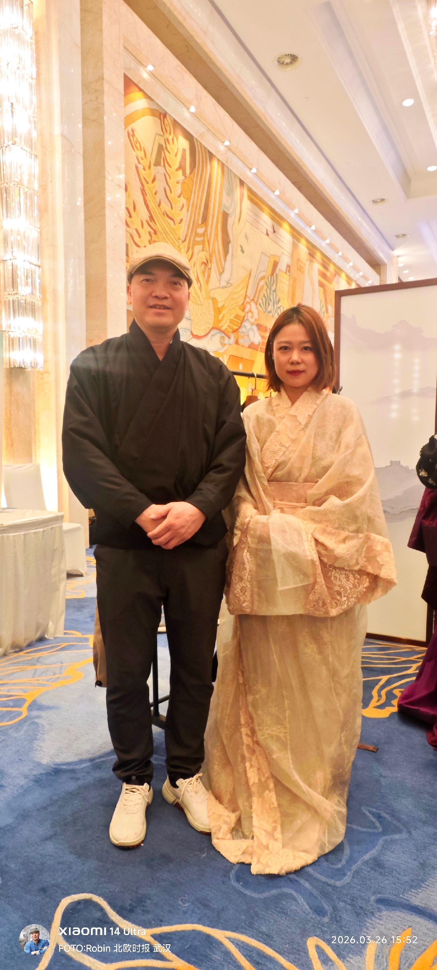 活动结束时,刘正心先生得知我从北欧归来,特意为我试穿一件创意汉服。