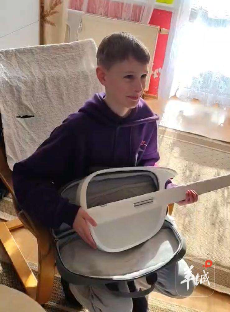 赫列娜分享给我的视频中,记录下了她儿子收到这把吉他的惊喜时刻。当赫列娜把吉他递给儿子瓦谢克,小家伙接过吉他,脱口而出:“我好喜欢这件礼物”。一个外国孩子发自内心的开心透过屏幕感染了我,也让我感到自己做的一切非常值得。