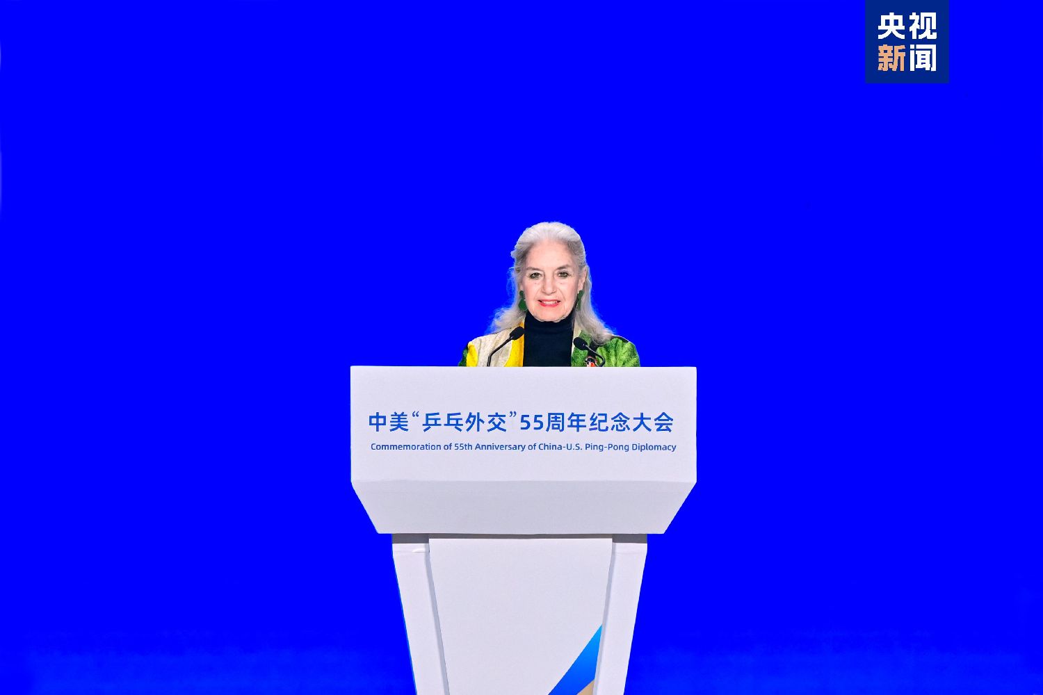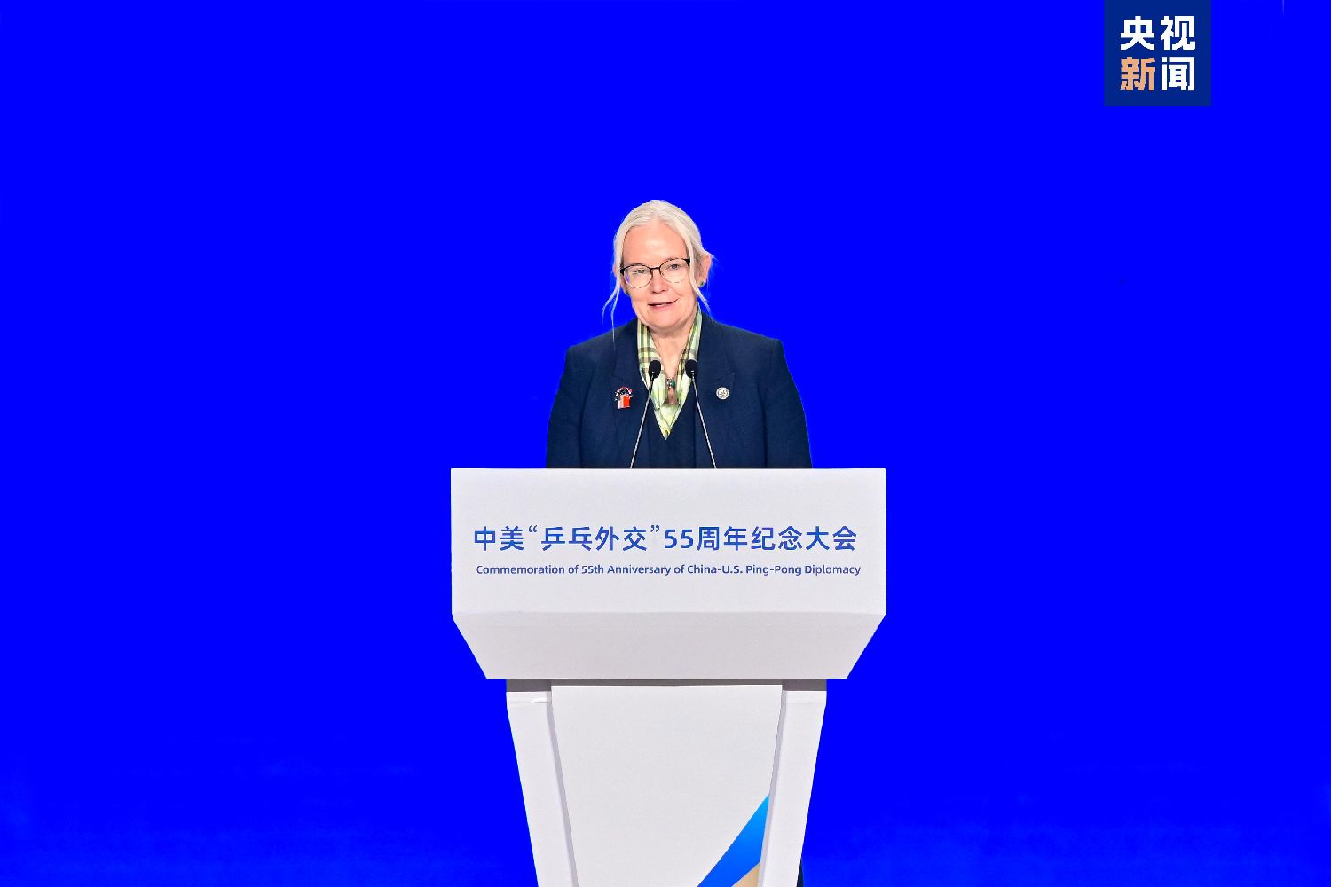 中宣部副部长、中央广播电视总台台长慎海雄致辞时说,习近平主席的贺信是对我们深化中美友谊、开展交流合作的重要指引,必将激励我们为推动中美关系稳定、健康、可持续发展作出新贡献。55年前,一次春天的到访,重新开启两国人民友好往来的大门。55年后的今天,“乒乓外交”蕴含的政治智慧和战略远见,愈发彰显出以对话代替对抗、以善意化解隔阂的力量。中央广播电视总台坚持从历史中汲取智慧和力量,推动中美人民在交流合作中相知相亲、在互学互鉴中携手前行,共同拉紧友谊纽带。我们以文化为媒,做中美人文交流的“传播者”;以科技为帆,做创新技术合作的“推动者”;以交流为桥,做中美友好事业的“耕耘者”。站在中国“十五五”开局的新起点上,总台愿与各界朋友发扬“同球共济”精神,为推动构建人类命运共同体贡献更多力量,让中美友谊之树茁壮成长。