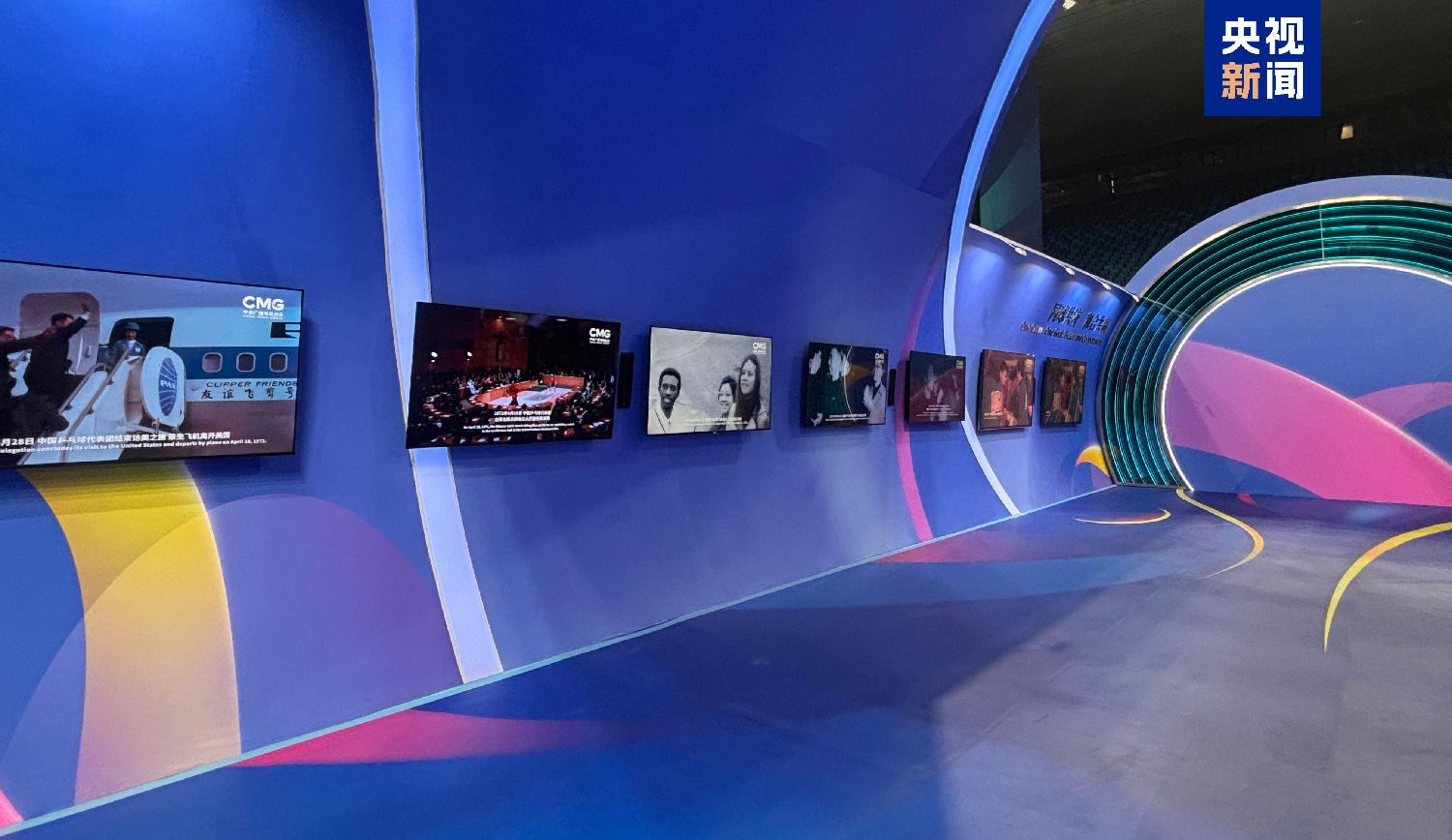 纪念大会现场特别设置了多项“乒乓外交”和中美体育交流沉浸式体验项目。中央广播电视总台运用8K超高清AI修复技术,重现半个多世纪前“乒乓外交”的珍贵历史影像。