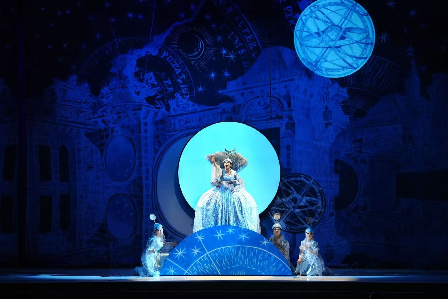 4月12日晚,作为第41届上海之春国际音乐节闭幕演出,中德联合制作的莫扎特歌剧《魔笛》在上音歌剧院上演。(图片来源:中新社)