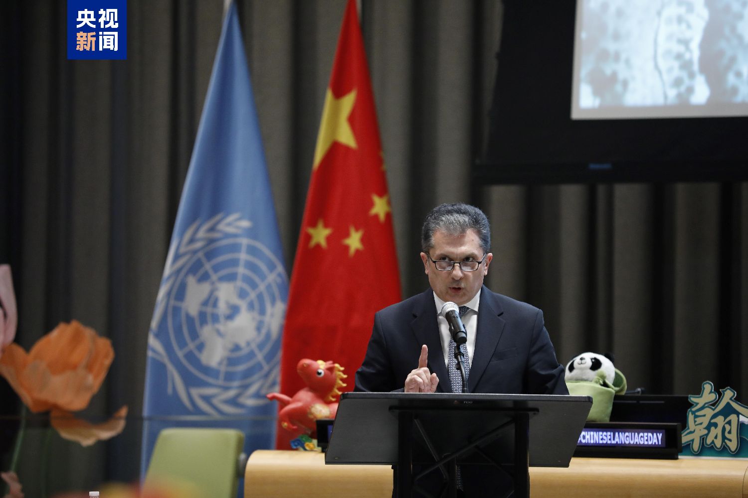 傅聪表示,今年是新中国恢复联合国合法席位55周年。作为联合国六种官方语言之一,中文忠实记录了联合国的发展以及中国与联合国的合作足迹,成为向世界传递多边主义理想与行动的重要桥梁。今年也是联合国大会部中文处成立80周年。80年来,一代又一代的中文语言工作者们,以文字为媒,为服务联合国使命、促进多边对话作出了不可磨灭的贡献。长期以来,国际社会通过中文了解中国、理解中国。我们欣喜地看到,“中文热”“汉学热”“中国热”近年来持续升温,体验中式生活、来一场说走就走的中国行正悄然引领新的时尚。语言承载着文明,中文就像一座桥梁,引领人们走进中华文明的深处。面对变乱交织的世界,我们需要树立“世界大同”的崇高理想,坚持“天人合一”的可持续发展理念,弘扬“万物并育而不相害”的豁达智慧。联合国高度重视多语言主义、倡导尊重文明多样性。今天我们在这里共同庆祝中文日,正是践行全球文明倡议、推动文明交流互鉴、美美与共的生动写照。我们期待以语言为媒、以交流为桥,与各国和联合国一道,携手讲述更多美好的故事,谱写命运与共的灿烂华章。