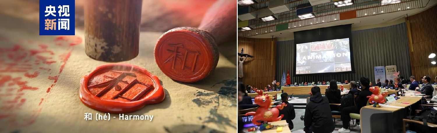 活动现场展映了中央广播电视总台出品的AI短视频《说文解字》,带领现场嘉宾沉浸式感受汉字的形态之美与文化意蕴。由中国常驻联合国代表团与总台联合发起的“学中文”创意短视频征集活动获奖作品,以及总台与美国纽约电影学院共同主办的全球AI影视作品征集活动优秀作品同步展映。