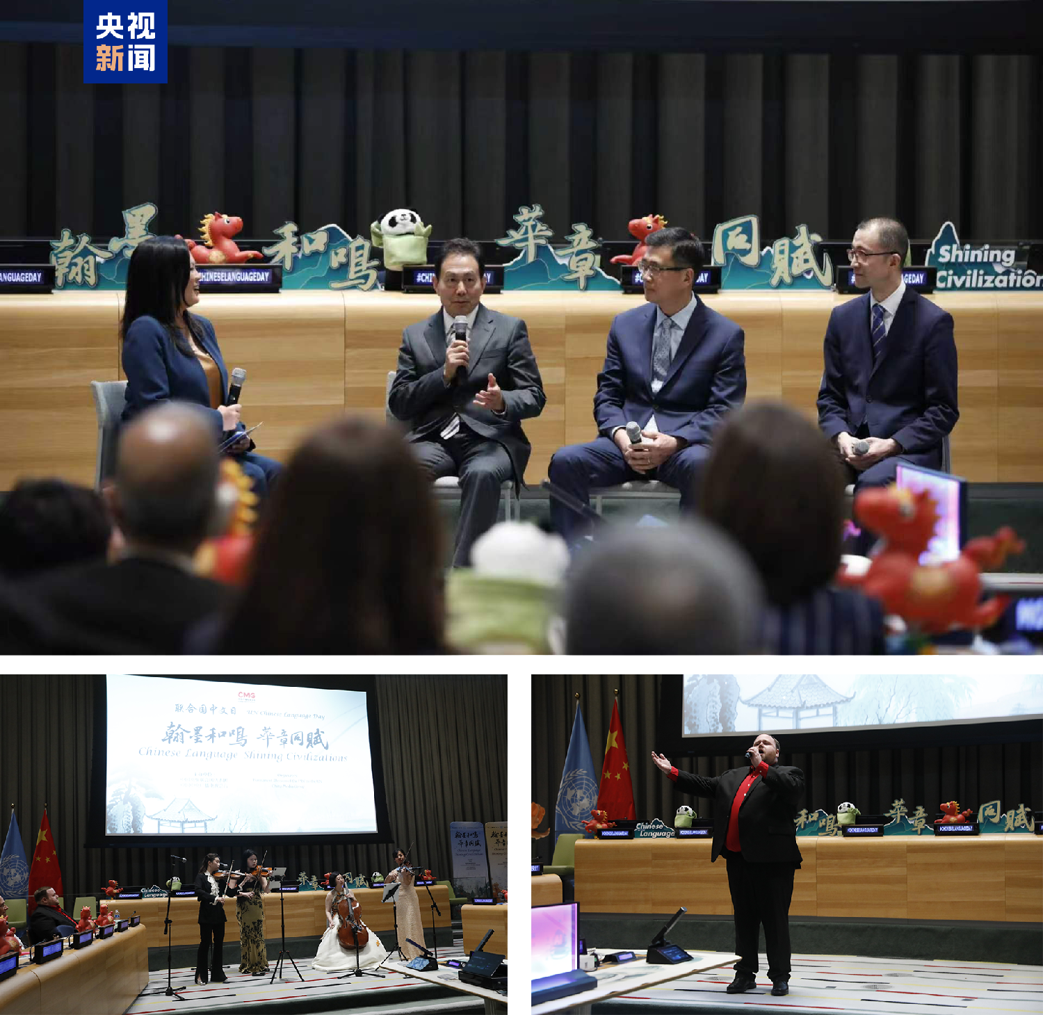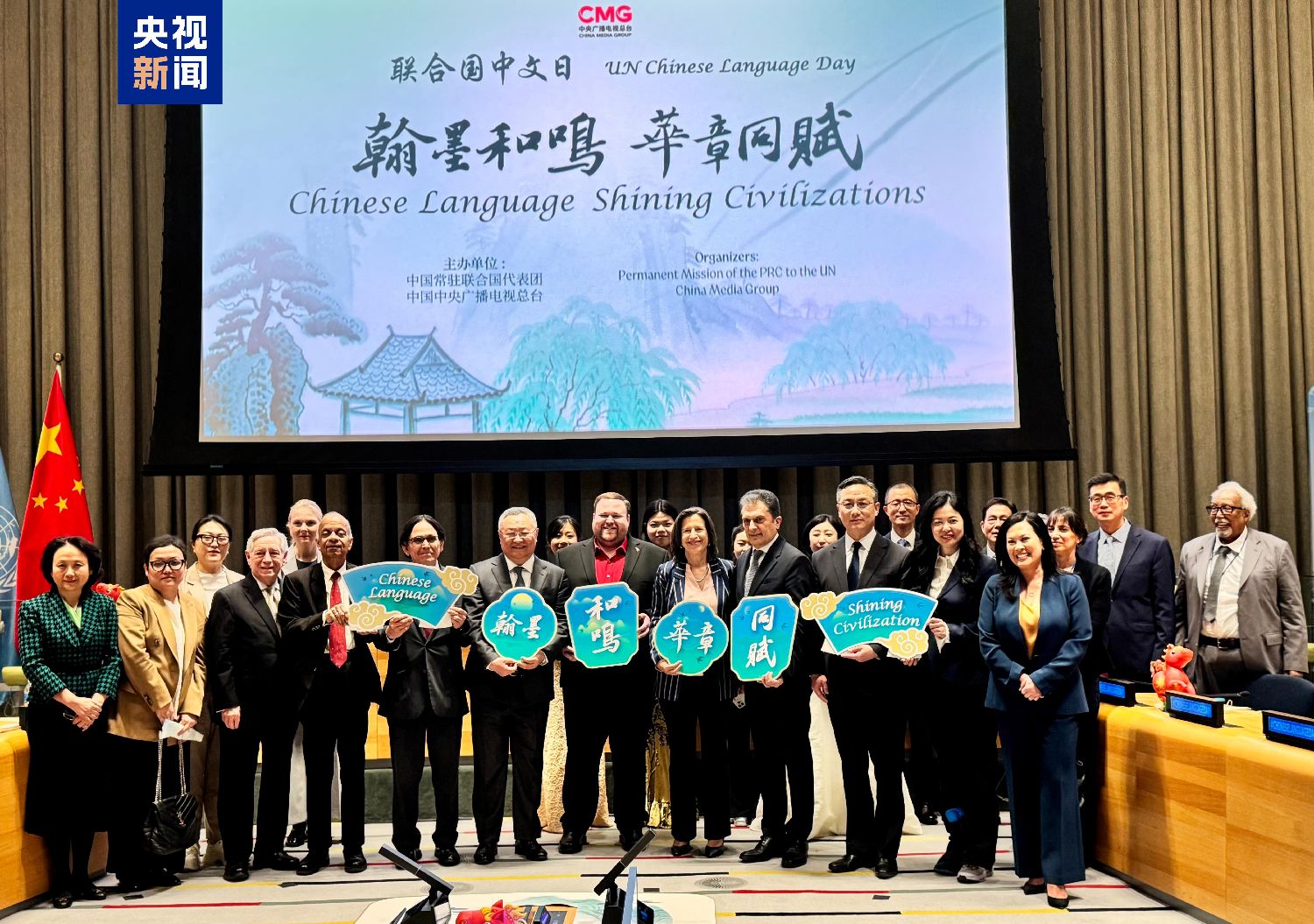 为庆祝第17个联合国中文日,当地时间4月13日,“翰墨和鸣华章同赋”主题文化活动在纽约联合国总部举行。本次活动由中国常驻联合国代表团与中国中央广播电视总台共同主办。中宣部副部长、中央广播电视总台台长慎海雄作视频致辞。中国常驻联合国代表傅聪,联合国全球传播部副秘书长弗莱明、大会和会议管理部副秘书长阿比连、管理战略与合规部副秘书长哈雷出席活动并致辞。联合国秘书处高级官员、多国驻联合国使节、文化教育界、媒体界等各界友好人士逾200位嘉宾参加活动。