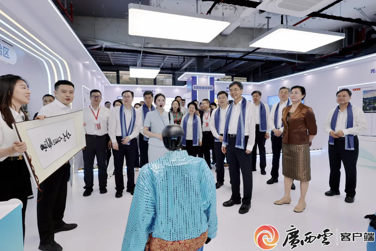 余韵未散,科技浪潮已扑面而来。陈刚、韦韬、孙大伟等步入第四单元“智启未来・AI岛”,了解广西旅游发展集团、柳州人工智能工业国潮馆、自治区生态环境厅、广西出版传媒集团等单位带来的AI应用场景,近距离感受人工智能赋能千行百业的生动实践。