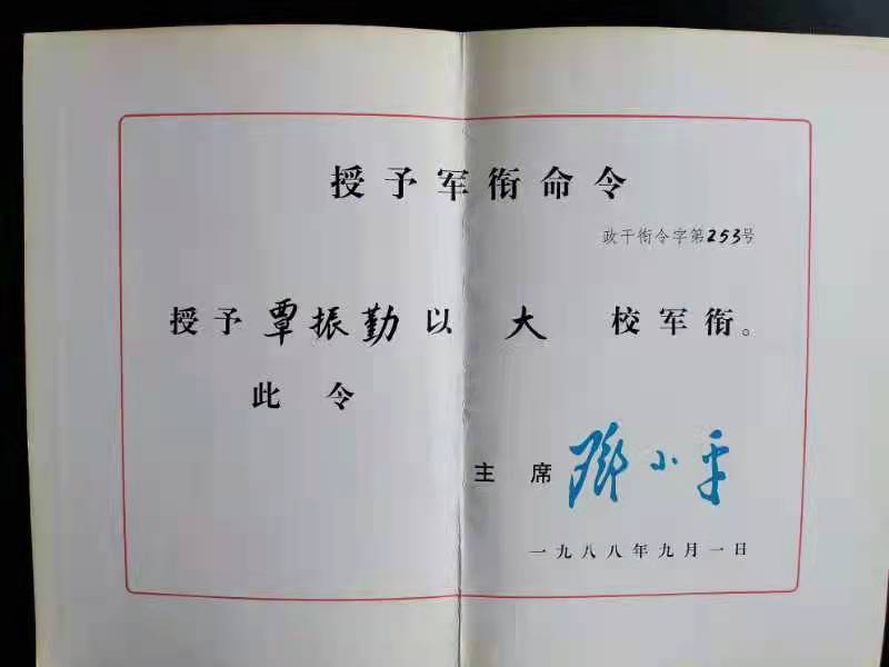 1988年9月,军队恢复军衔制度,覃振勤被中央军委授予大校军衔。