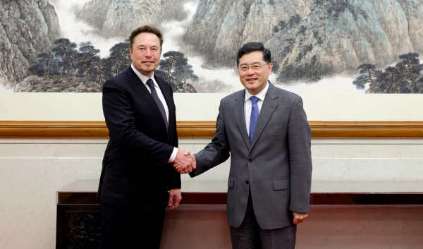 2023年5月30日,国务委员兼外长秦刚在北京会见特斯拉首席执行官马斯克。图源:中国外交部官网