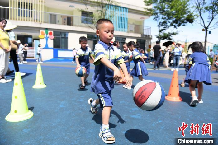 6月28日,太安社区幼儿园里,孩子们开展体育活动。杨华峰摄