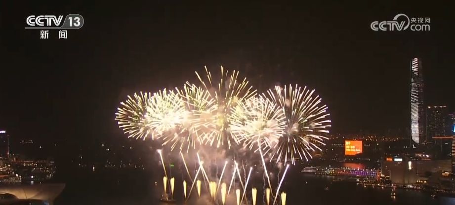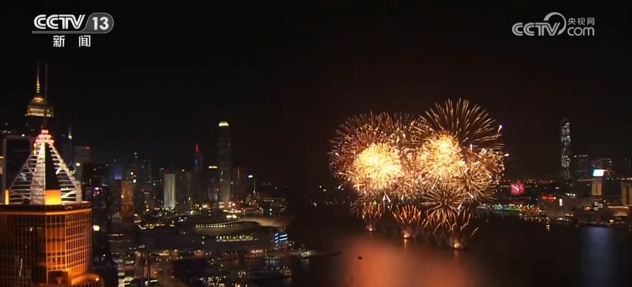 央视网消息:10月1日晚9时,香港举行国庆烟花汇演,庆祝中华人民共和国成立74周年。