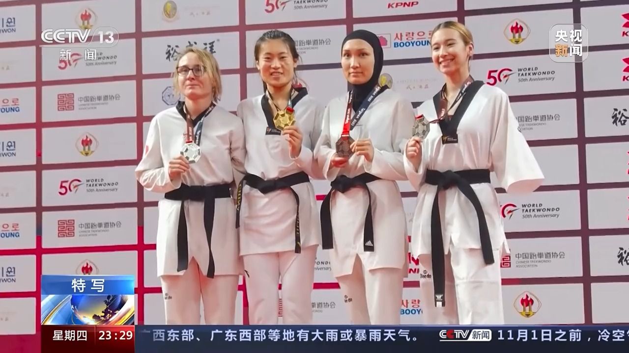 这是女子跆拳道58公斤级K44级的比赛现场,李羽洁战胜对手,获得了铜牌。虽然获得了奖牌,但李羽洁还是偷偷哭了鼻子,她说最遗憾的是在半决赛中,她以1分之差,无缘争金。