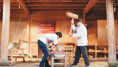 村民正在打年糕。