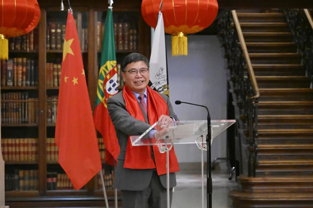 适逢中国农历大年三十,正是万家灯火除夕夜,最是一年团圆时,赵本堂大使向所有来宾拜年并致以新春祝福。赵大使在致辞中回顾了过去一年中葡两国在各领域交流不断深化,硕果累累。指出今年是中华人民共和国成立75周年、中葡建交45周年、澳门回归25周年,中方愿同葡方共同努力,继续深化两国务实交流与合作,为两国发展繁荣贡献新力量。