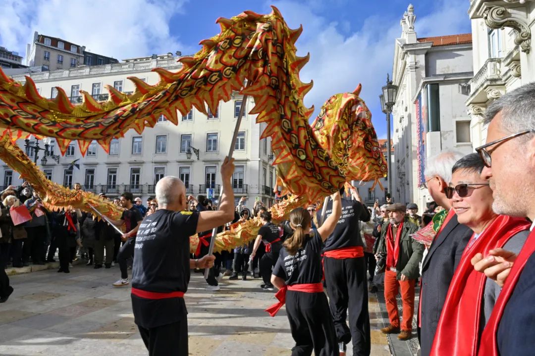 2月9日,里斯本市政府前张灯结彩、喜庆欢腾,由中国驻葡萄牙大使馆和里斯本市政府共同主办、葡萄牙里斯本侨团“欢乐春节”组委会具体承办的2024年葡萄牙里斯本“欢乐春节”庆祝活动在此拉开序幕。驻葡萄牙大使赵本堂、里斯本市长莫埃达斯、葡萄牙中华总商会会长蔡文显、使馆主管文化和教育的参赞甘萍等中葡各界嘉宾相聚一堂,共庆中国龙年春节。