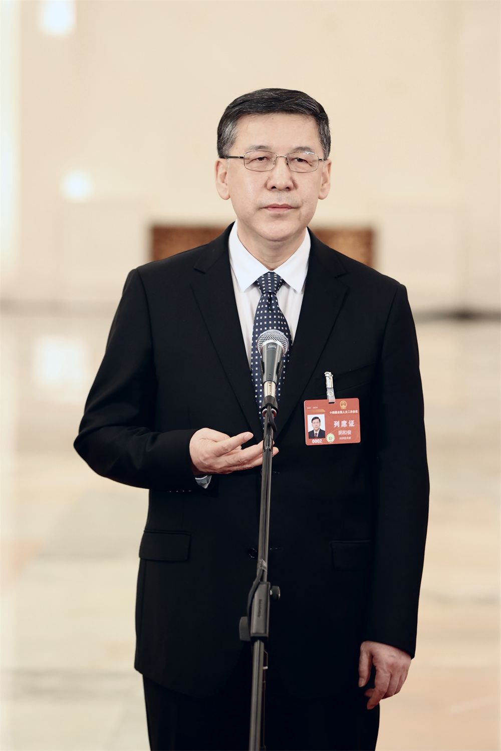 3月5日,十四届全国人大二次会议首场“部长通道”集中采访活动在北京人民大会堂举行。图为科学技术部部长阴和俊接受媒体采访。(图片来源:本文图片均自中新社)