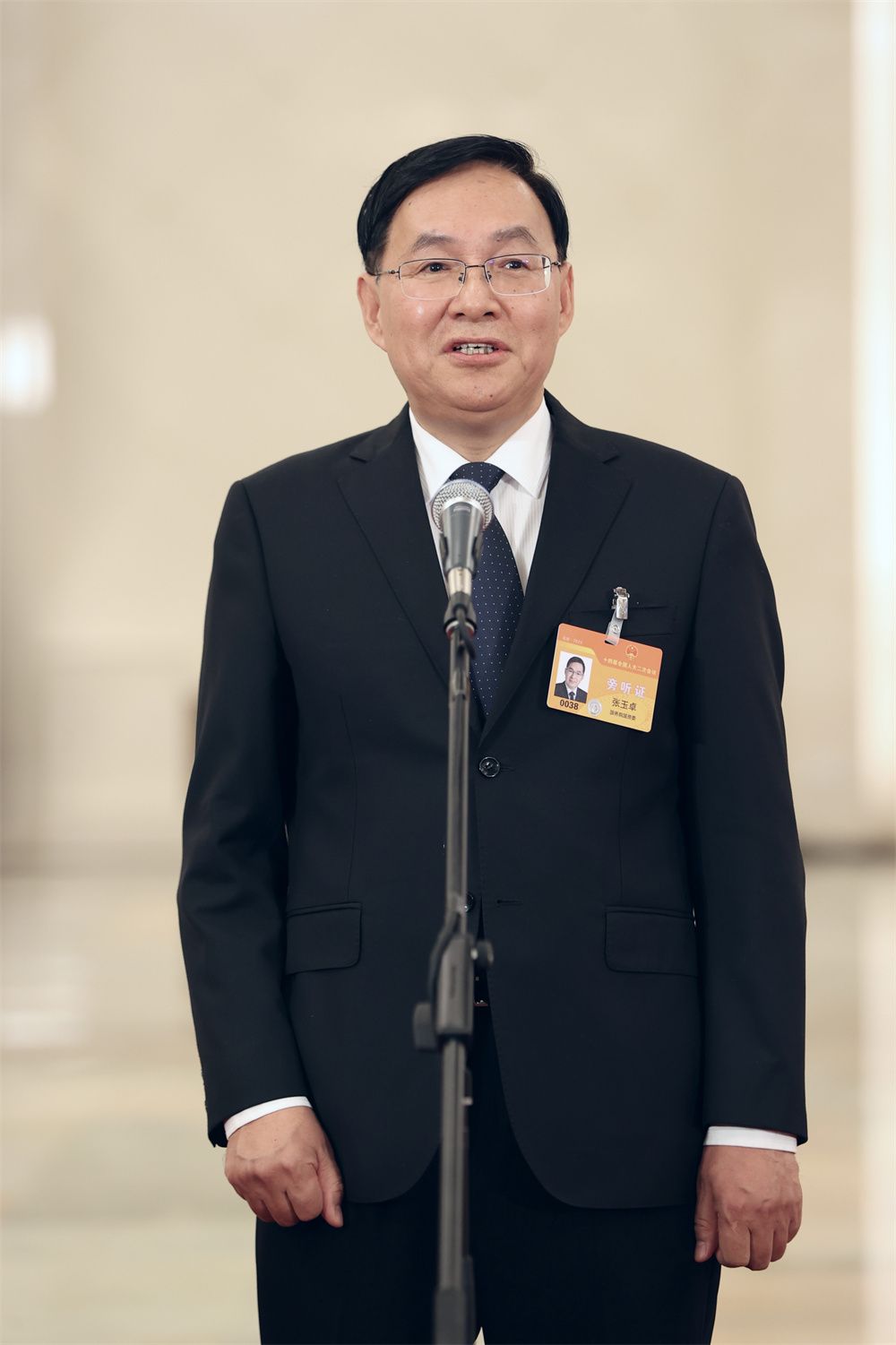 3月5日,十四届全国人大二次会议首场“部长通道”集中采访活动在北京人民大会堂举行。图为国务院国有资产监督管理委员会主任张玉卓接受媒体采访。