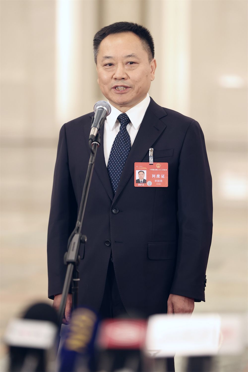 3月5日,十四届全国人大二次会议首场“部长通道”集中采访活动在北京人民大会堂举行。图为水利部部长李国英接受媒体采访。