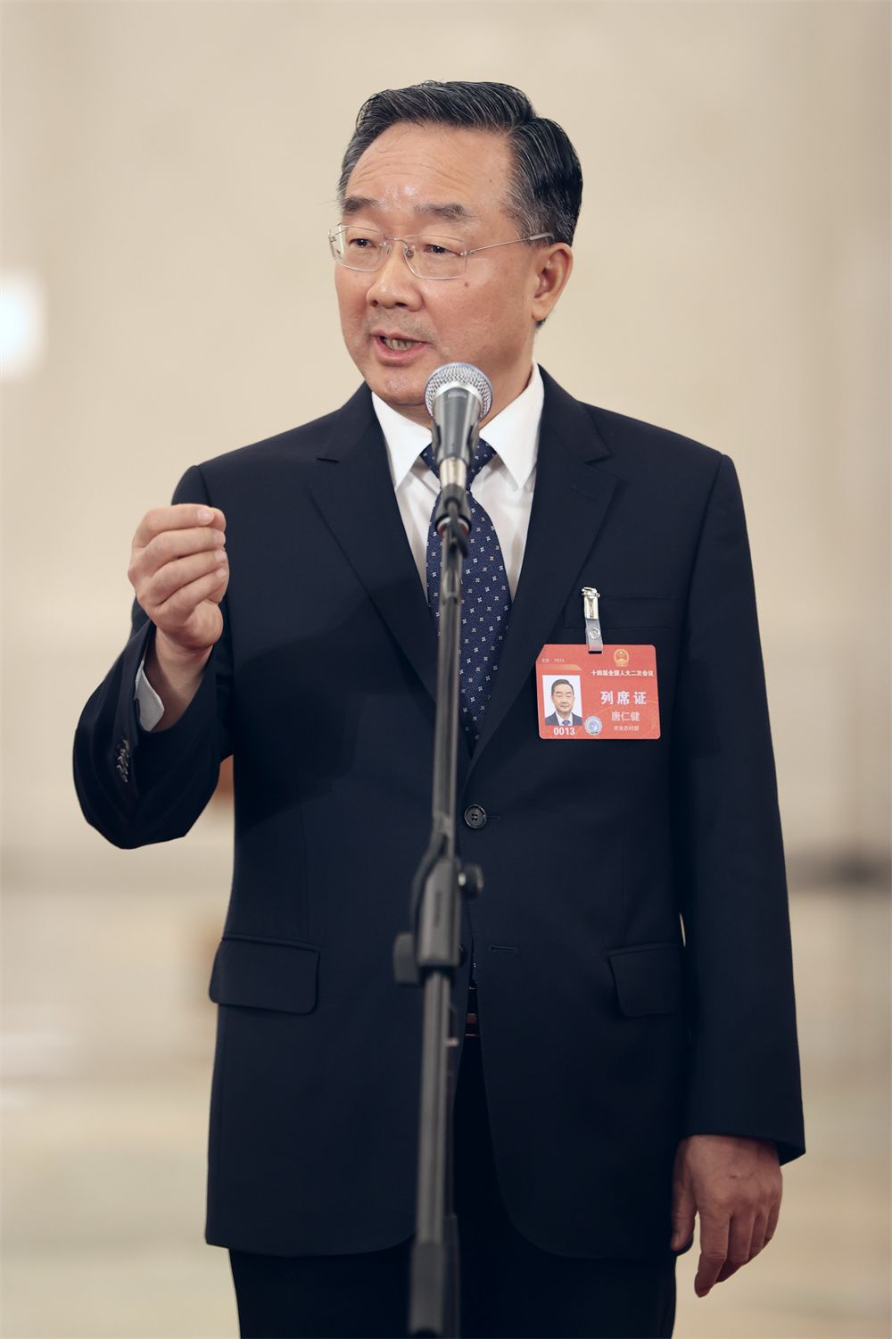 3月5日,十四届全国人大二次会议首场“部长通道”集中采访活动在北京人民大会堂举行。图为农业农村部部长唐仁健接受媒体采访。