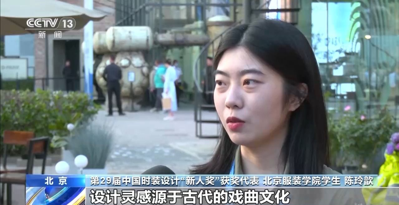 第29届中国时装设计“新人奖”获奖代表 北京服装学院学生 陈玲歆:我的设计作品的名字叫“游园惊梦”,设计灵感源于古代的戏曲文化,我从中提取了丰富的色彩,我想让观众看到传统的元素也能够与现代的包括西装一些形制也能够进行融合。