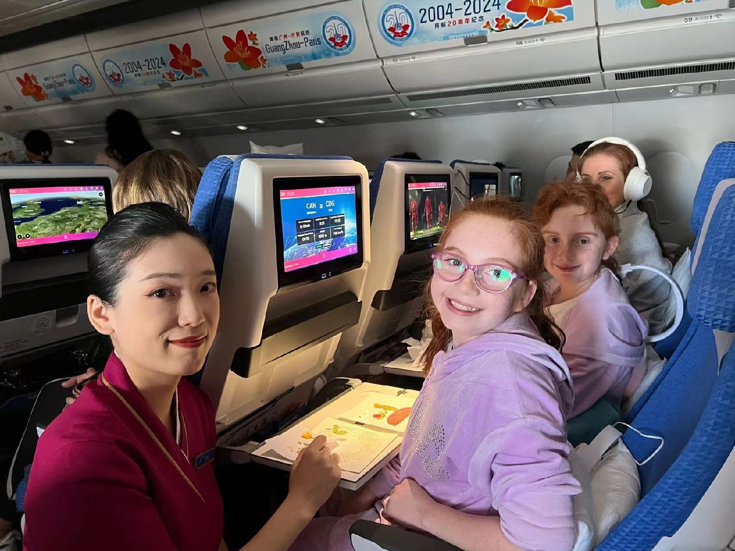 据了解,南航曾在2004年为开通广州至巴黎航线,特别招聘了14名法语专业的应届毕业生在航班上担任翻译工作。此次主题航班的乘务长梁量,正是从那个时候开始与南航结缘。她表示:“这条航线的开通,不仅是中法两国人民往来及经贸合作的重要纽带,也是两国友谊的象征。很荣幸能够成为这条空中丝路上的‘摆渡人’,为往返中法两国间的旅客送上美好的出行记忆。”