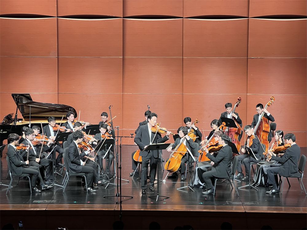 第二届“北京香港学生清华暑期音乐营”汇报音乐会16日晚在清华大学蒙民伟音乐厅举办。20余位来自京港两地的青少年与国际知名小提琴家吕思清同台演绎中外名曲,为百余位观众带来一场别开生面的音乐会。
