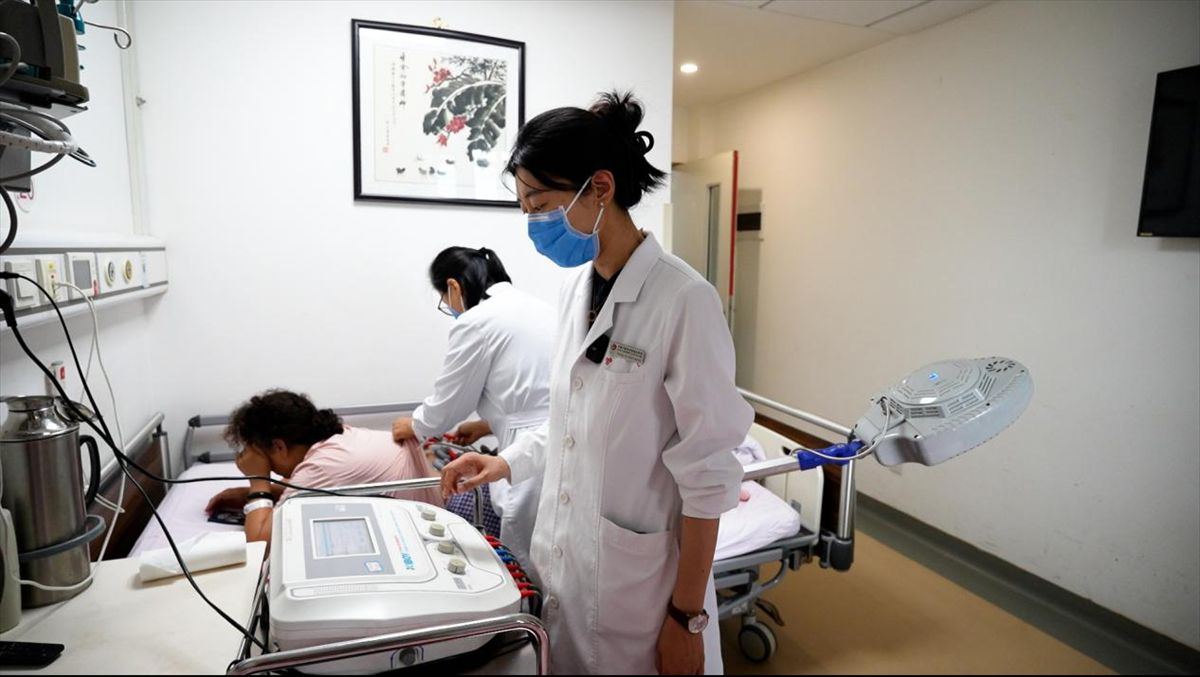 张艳虹正在使用中医现代化设备为病人进行治疗。 海外网 康杰/摄