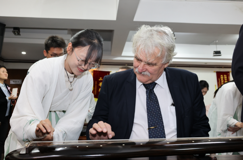 萨博·伊斯特万与广州城市职业学院学生互动。