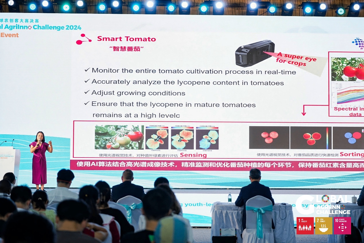 在本届比赛现场,AI技术成为参赛团队进行农研创新的重点,9个团队先后从育种、种植、管理到销售等环节,展示了各个创业团队应用人工智能改造传统农业生产体系的方案。