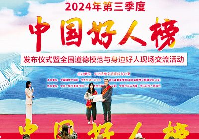 30多年坚守海上救援的“渔家子弟”董建海,数九寒天跳入冰窟救人献出生命的普通村民高元岭,自愿守护烈士英灵43载的退伍老兵顾平,牺牲在防汛一线的90后基层干部李东,21年不离不弃照料患病亲人的好儿媳王秀杰……11月12日,由中央精神文明建设办公室主办的2024年第三季度“中国好人榜”发布仪式暨全国道德模范与身边好人现场交流活动在湖北省十堰市举办,经各地推荐、网友评议和专家评审等环节,共有152人(组)助人为乐、见义勇为、诚实守信、敬业奉献、孝老爱亲身边好人光荣上榜。