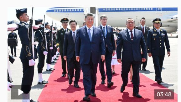 习近平发表机场书面讲话,向秘鲁政府和秘鲁人民致以诚挚问候和良好祝愿。