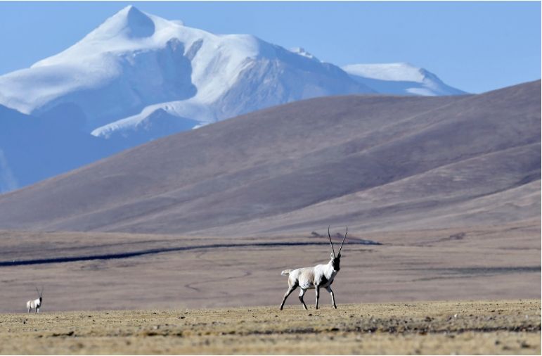 西藏那曲市申扎县境内的藏羚羊。
