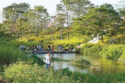 南岗河位于广东省广州市黄埔区,经过源头治污、生态复苏等举措,实现水质显著提升,是大都市小流域幸福河湖建设的生动案例。图为人水和谐的南岗河。
