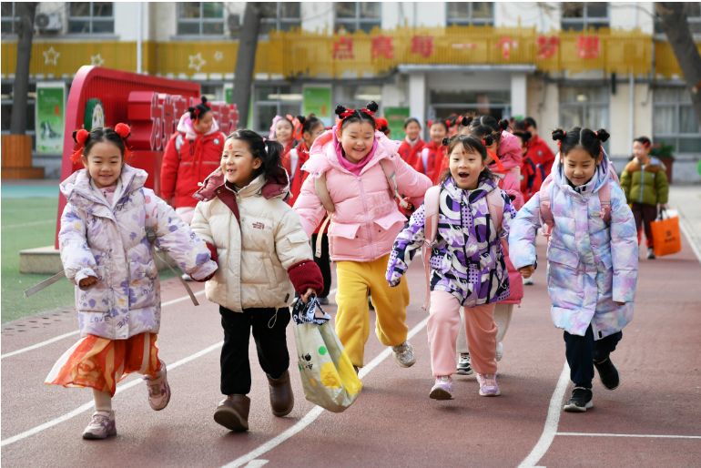 2025年2月14日,河北省石家庄市中小学春季学期正式开学。图为育才小学不少小学生打扮成“哪吒”模样返校。(图片来源:中新社)