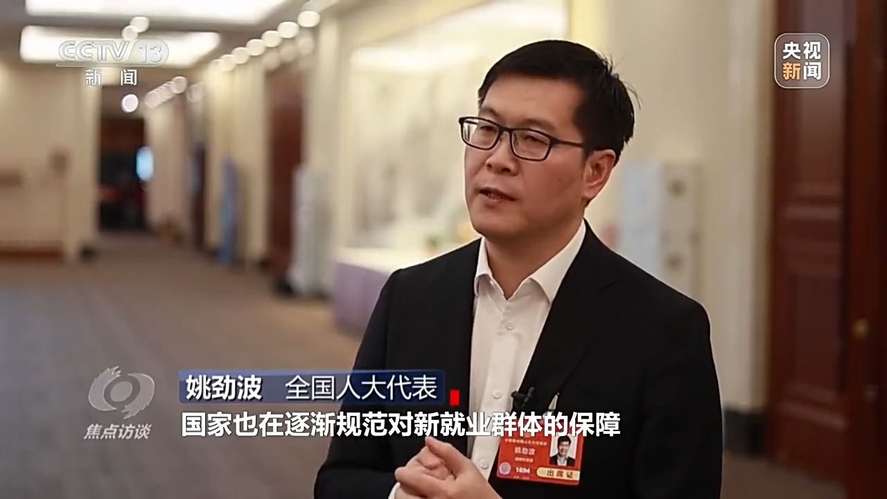 全国人大代表姚劲波:国家也在逐渐规范对新就业群体的保障,让劳动者选择灵活就业,还是需要一些规范,得到更多的保护,就业会更充分。