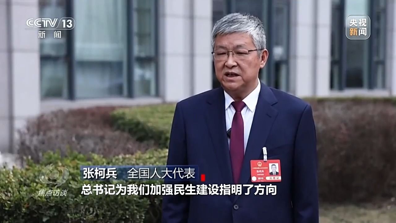 全国人大代表张柯兵:这次两会期间,总书记为我们加强民生建设指明了方向。我们将认真贯彻落实,进一步把老百姓的事办实、办好。提出了“三个家门口”的目标,也就是努力让孩子在家门口能够上好学,让群众在家门口能够看好病,在家门口能够就好业,让每一位老年人幸福地安度晚年。