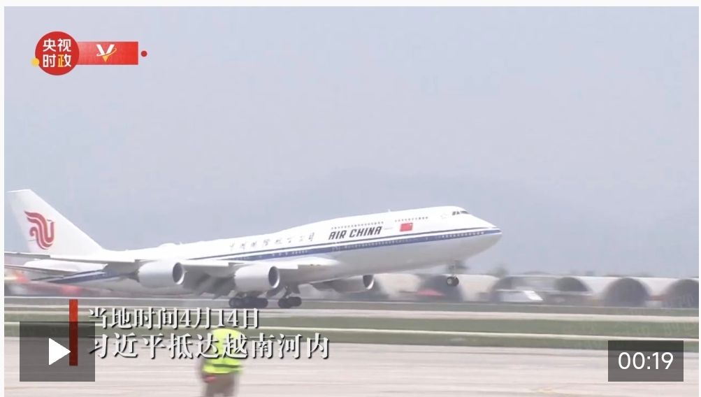 当地时间4月14日中午,中共中央总书记、国家主席习近平乘专机抵达河内,应越南共产党中央委员会总书记苏林、越南社会主义共和国主席梁强邀请,对越南进行国事访问。