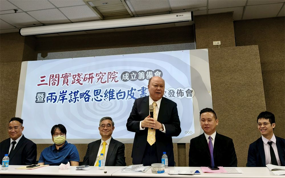 由新党推动的“三阁实践研究院”成立筹备会暨《两岸谋略思维白皮书》首次发布会25日在台北举行。据新党副主席李胜峰介绍,该研究院旨在搭建平台,吸纳台湾各党各派支持和平统一的有志青年,推动有关两岸和平统一议题的相关研讨。