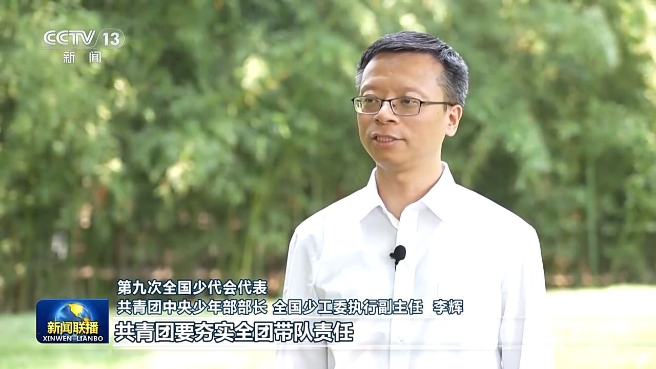 第九次全国少代会代表共青团中央少年部部长全国少工委执行副主任李辉:学习贯彻总书记贺信精神,共青团要夯实全团带队责任,更加深刻领悟“两个确立”的决定性意义,坚决做到“两个维护”,牢记总书记嘱托,带领少先队高举队旗跟党走,推动党、团、队育人链条衔接贯通,深化组织教育、自主教育、实践教育,大力培养推进强国建设、民族复兴伟业的未来生力军,让星星火炬在新征程上更加闪耀。