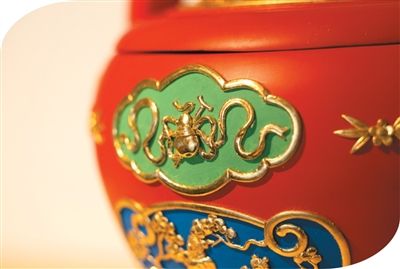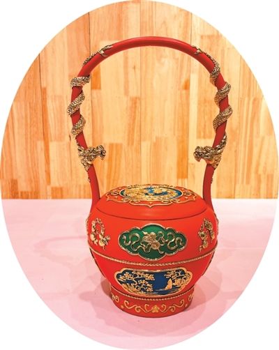 泥金彩漆双龙提桶。