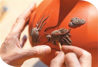 浙江省宁波市宁海县,在一间满是古朴气息的工作室里,黄才良俯身案前,用竹刀轻轻挑起一团泛着温润光泽的漆泥,在一盏朱红色的天球瓶表面,开始了精细地堆塑和雕琢。指尖起落,竹刀飞转,一条活灵活现的龙跃然瓶上。他身后的博古架上,一件件泥金彩漆作品红彤彤、金灿灿,漆艺古韵与手作温度在这里悄然交融。作为宁波泥金彩漆的国家级非遗传承人,黄才良与这项技艺的缘分,已走过半个世纪。