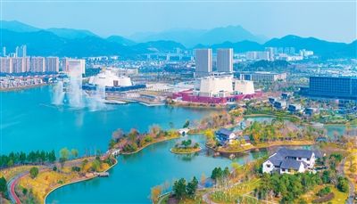 俯瞰浙江省宁海县天明湖。
