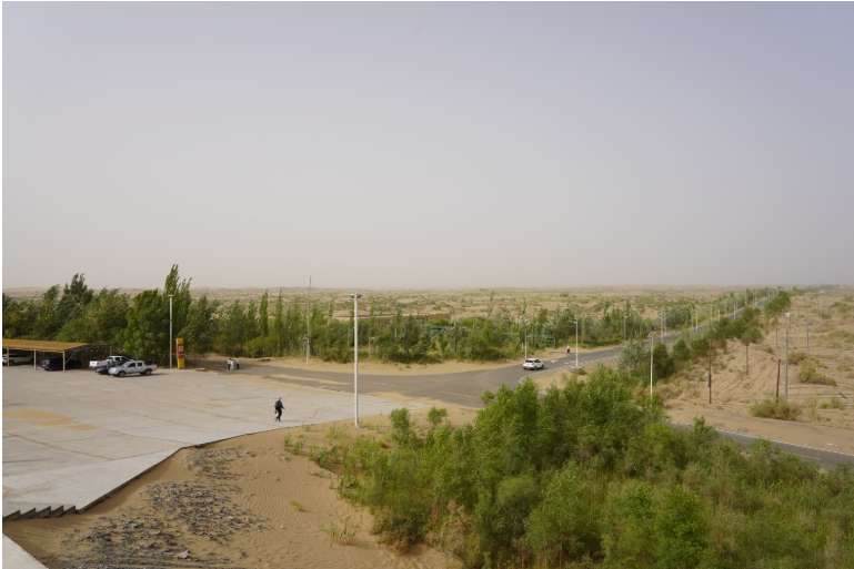 6月13日,新疆巴州且末县河东治沙基地的防沙林带。(图片来源:本文图片均据中新社)