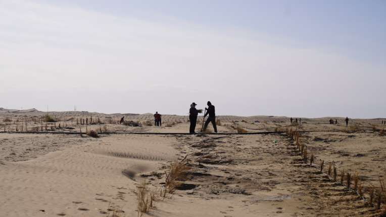 库尔班是且末县治沙人的缩影,他们敢打敢拼、越挫越勇,硬是用双手在茫茫荒漠上铺开点点绿意。在他们的带动下,治沙事业逐渐成为全民参与的生态工程。“27年里,全县有上百万人次自愿参与到植树造林的工作中来。”且末县防风治沙工作站站长阿巴斯·艾萨介绍。