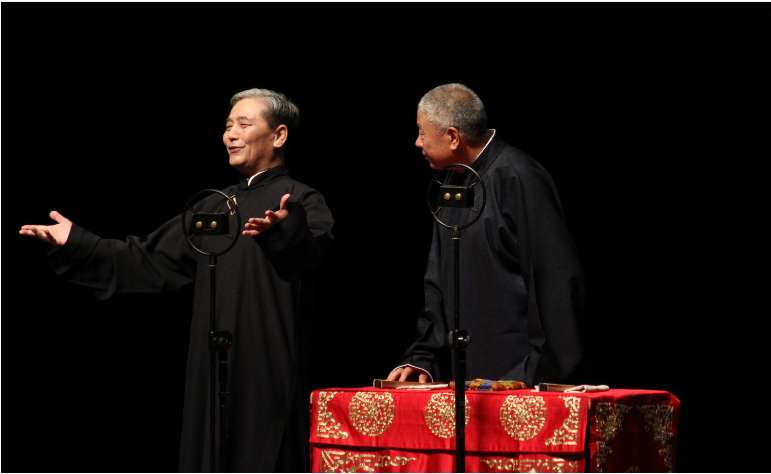 中新社报道,相声,这门源于清末的曲艺形式,自市井兴起,生根于天津,至今已逾百年。2008年,相声被列入中国国家级非物质文化遗产名录。从街头“撂地”卖艺到走进剧场、荧屏与新媒体,相声始终未脱离自己的根——生活。