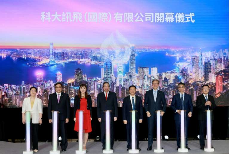 6月24日,中国内地科技公司科大讯飞及讯飞医疗举行香港办公室开幕典礼,积极筹备在香港设立国际总部和国际研究院。图为主礼嘉宾合影。(图片来源:中新社)