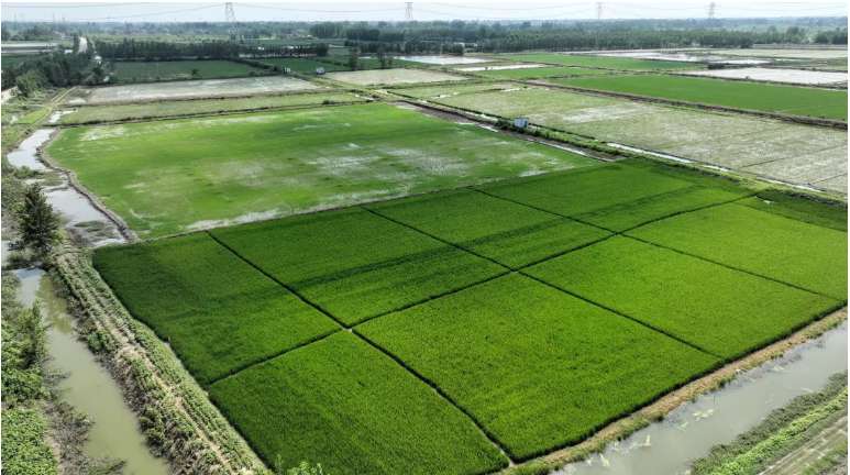 2025年6月24日,湖北荆州监利市周老嘴镇鲁桥村禾苗长势正旺。
