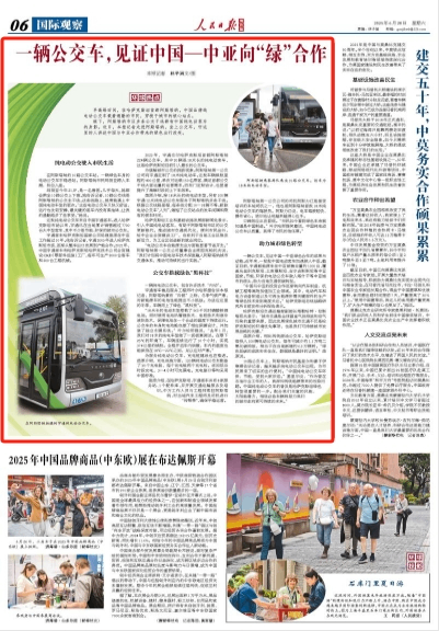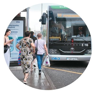 早高峰时间,在哈萨克斯坦首都阿斯塔纳,中国品牌纯电动公交车载着通勤的市民,穿梭于城市的核心站点。