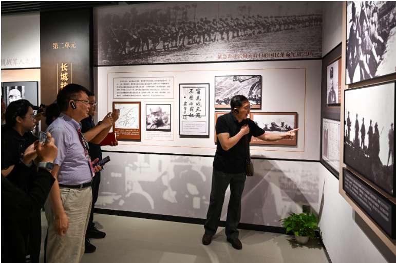6月26日,2025“文化抗战川渝行”两岸媒体采访活动走进张自忠烈士陵园。图为张庆成(右一)在唱《大刀进行曲》。(图片来源:本文图片均据中新社)