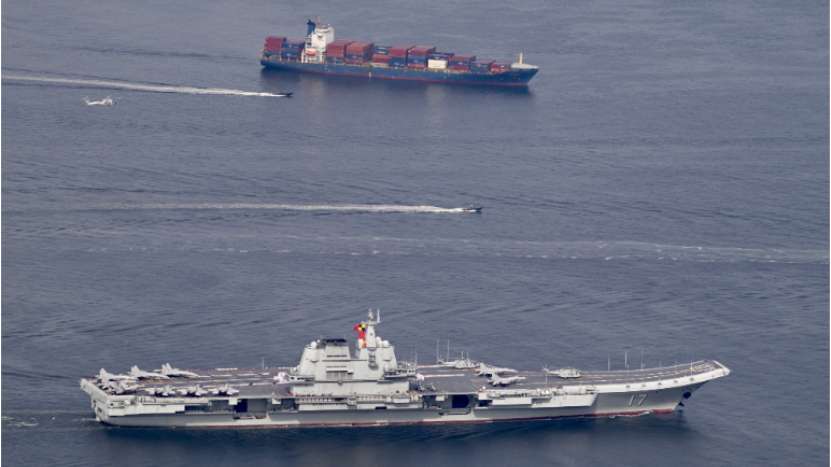 7月3日,由中国解放军海军航空母舰山东舰,导弹驱逐舰延安舰、湛江舰及导弹护卫舰运城舰组成的航母编队抵达香港,开启为期5天的访问活动。图为山东舰在香港海域行驶。(图片来源:本文图片均据中新社)